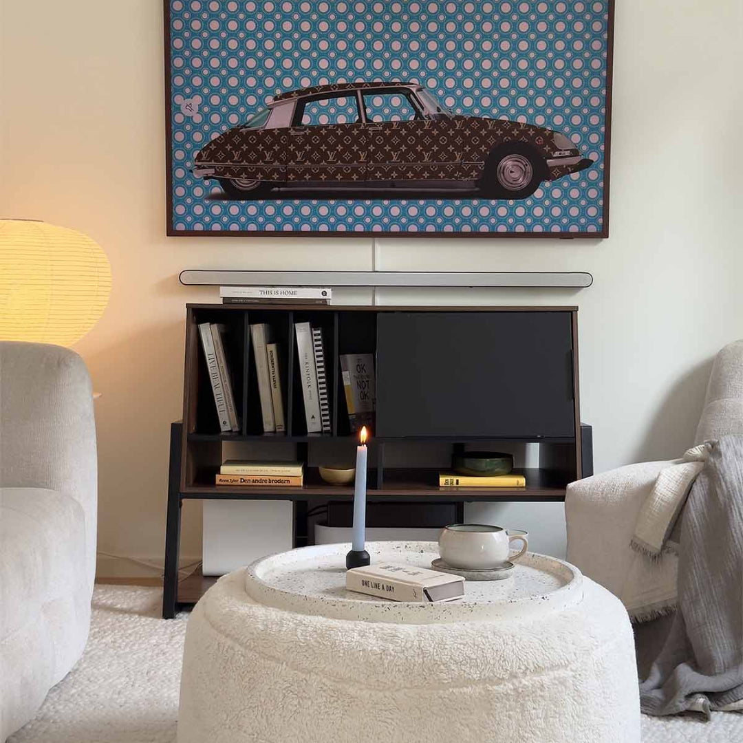 El Rack HiFi ofrece espacio para tocadiscos, discos de vinilo, diferentes equipos de audio, libros y elementos decorativos, manteniendo todo ordenado y al alcance de la mano.